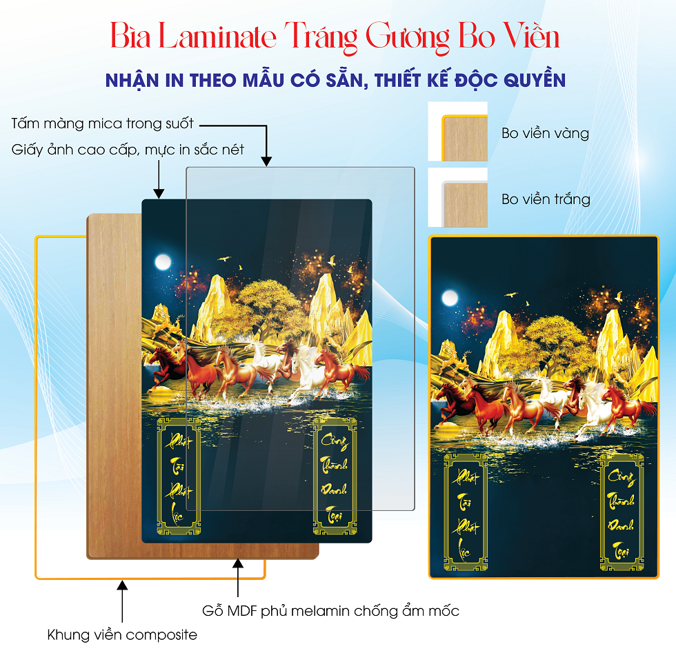 Ván lamina , tráng gương đẹp tinh xảo.
