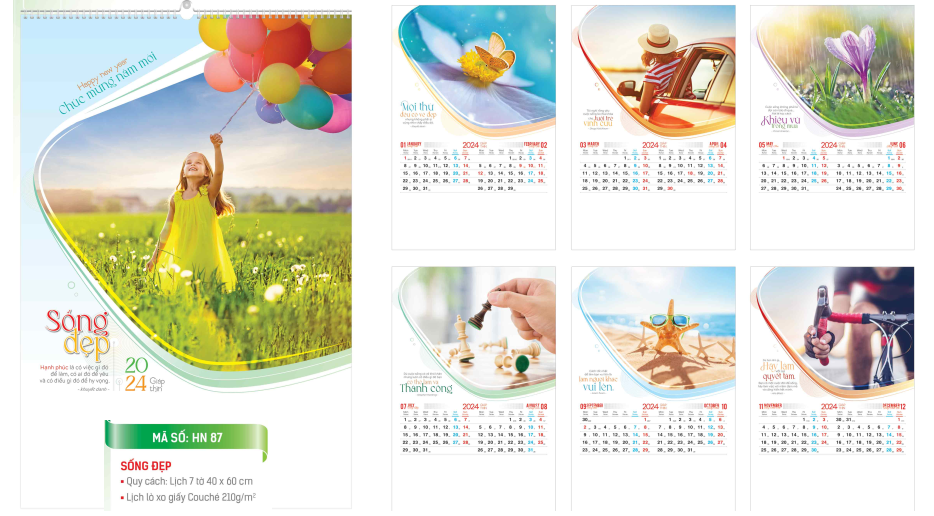 Lịch lò xo 7 tờ năm 2024 -với chủ đề Sống đẹp