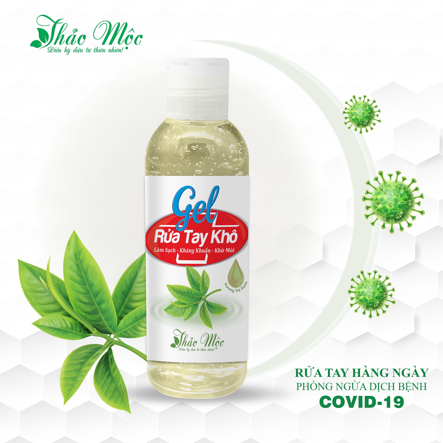 Gel rửa tay khô kháng khuẩn Thảo Mộc hương trà xanh