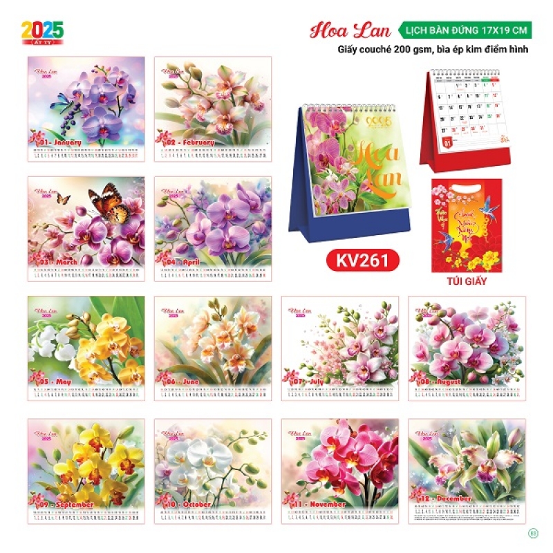 Lịch bàn chữ A 2025 chủ đề Hoa Lan ( KT 17x19cm)