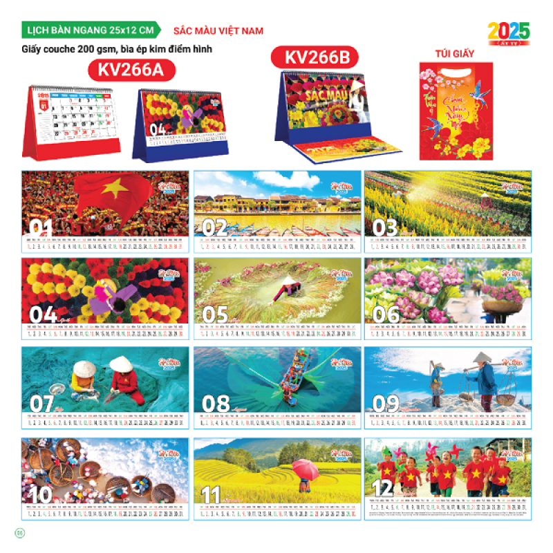 Lịch bàn chữ A 2025 chủ đề Sắc Màu Việt Nam ( KT 12x25cm)( có note)