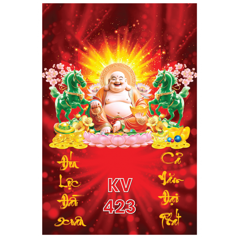 Lịch gỗ tráng gương hình Xuân Di Lặc với kích thước bìa lịch 40x60