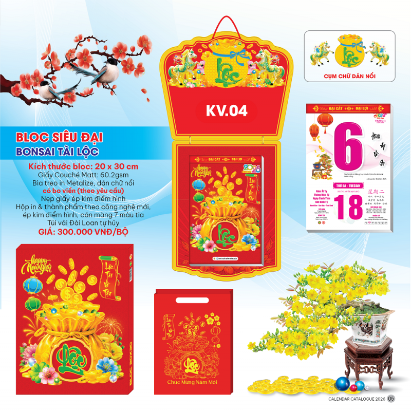 Lịch bloc cực đại 2026 - chủ đề Bon Sai Tài Lộc ( 20x30cm )